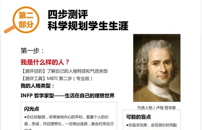 应用于中学生的测试中主要采用“人格类型”测试,人格类型指的是气质和性格。研究发现人格类型中气质类型具有稳定性,它是依赖于生物学基础的稳定的心理特征。而人格类型中的性格也是脑的机能,也有它的生物制约性,性格特征总是会受到一定的气质类型的影响,况且青少年正处于迅速发育阶段,气质是先天的,性格是后天的产物,性格在这个时期具有很强的可塑性,所以着重了解中学生的气质类型和在独特的遗传和环境条件下形成的特质,对升学和就业才最有参考价值。